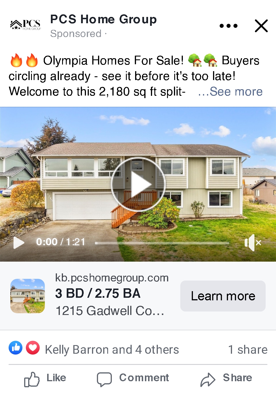 Below are just a few examples of the targeted advertising on Facebook that your home will benefit from when you hire me as your agent.